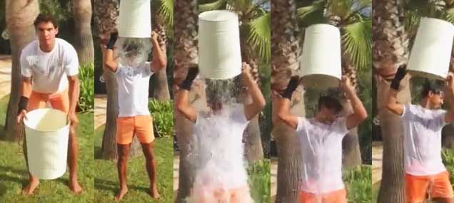 Ice Bucket Challenge". Nadal no sólo culminó el reto sino que además donará una cantidad de dinero para la lucha contra la enfermedad.