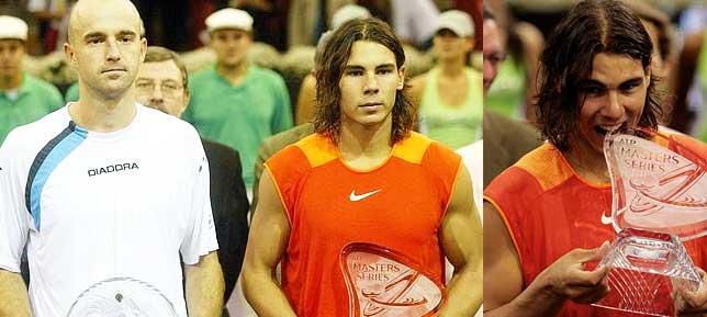 Rafa conseguía sobreponerse a una marcador adverso de 3-6, 2-6, cuando el torneo aún se disputaba en pista dura e infringiendo una dura derrota al croata con un marcador final de 3-6, 2-6, 6-3, 6-4 y 7-6(3).